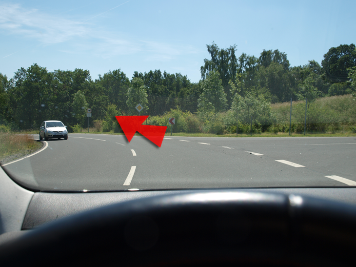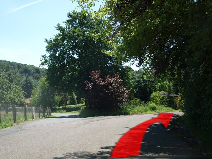 | (4.) Hauptstraße folgen nach Brücke über Autobahn (nach ca. 900m) LINKS HALTEN | ![]() |